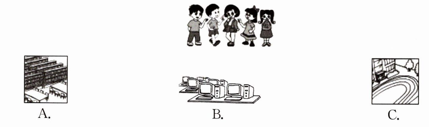 一、Amy在向同学们作介绍,你知道下面哪幅图片是Amy介绍的地方吗?根据他们的对话,选一选。