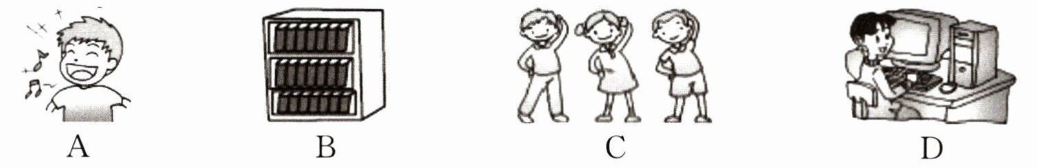 )1. In the morning, I ______.A. dance on the playground B. listen to music