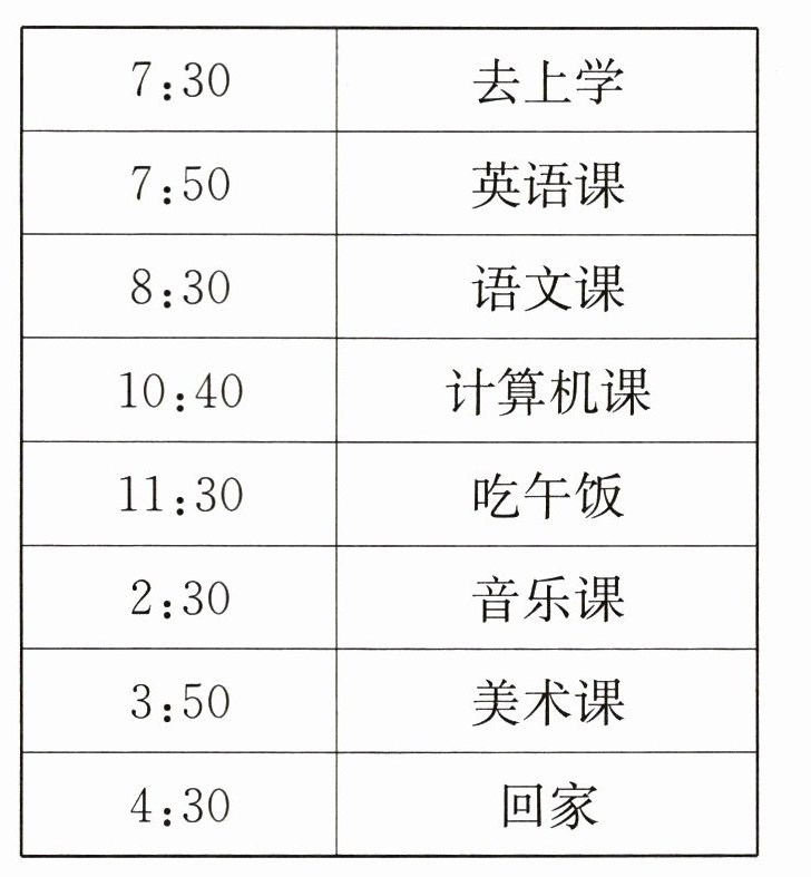 一、根据下面的课程表,完成短文,描述一下你这一天的学校生活。