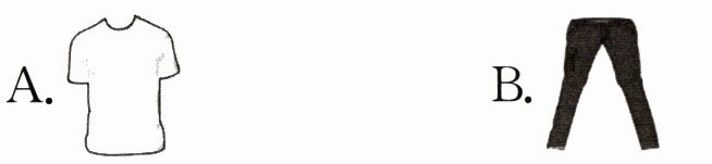 1. A 先看图片内容,A是T恤衫(T-shirt),B是长裤(trousers)。听对话时抓住关键词T-shirt,即可选出正确答案。