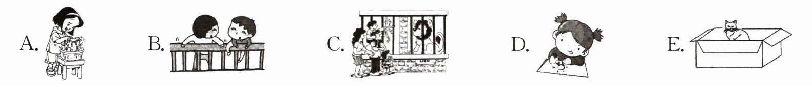 一、选择与句子相符的图片,并将图片序号填入对应句子前的括号内。