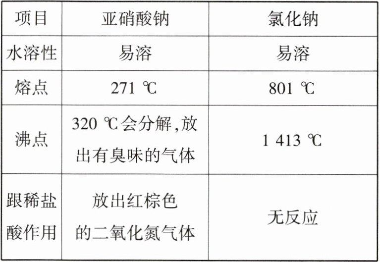 11. 亚硝酸钠有毒,外观酷似食盐且有咸味,曾发生过一起误把亚硝酸钠当食盐食用的中毒事件。亚硝酸钠和食盐的有关资料如下: