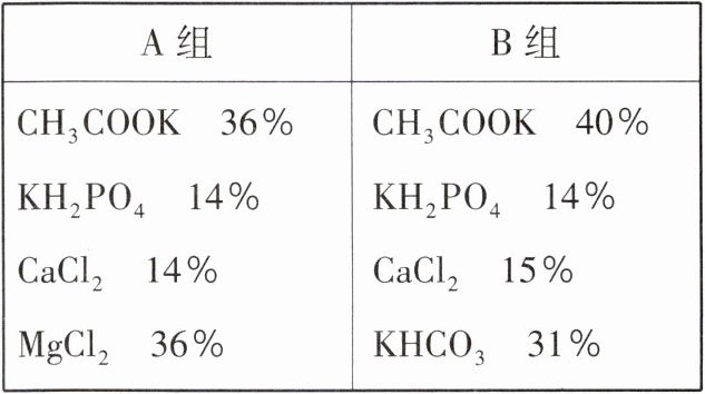 组的$CH_3COOK($乙酸钾)含量高。$(2)KH_2PO_4$的相对分子质量为