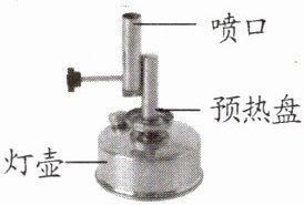 11. 座式酒精喷灯(如图)的火焰温度超过1000℃,使用时,向预热盘中注入酒精$(C_2H_5OH)$并点燃,待灯壶内酒精受热汽化从喷口喷出时,预热盘内燃着的火焰就会将喷出的酒精蒸气点燃,下列说法不正确的是 (