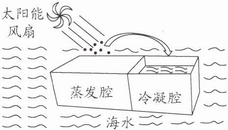 8. 某海水淡化系统(如下图)工作时,蒸发腔中的水在光热作用下变为水蒸气,太阳能风扇将水蒸气吹到冷凝腔冷凝,实现海水淡化。下列说法正确的是 (