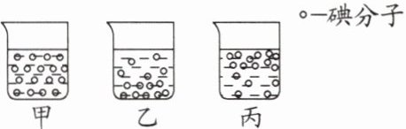 。(2)甲、乙、丙三位同学分别画出下面的示意图,表示碘的汽油溶液中碘分子的分布(汽油分子没有画出)。