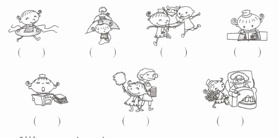 6. 第六幅图(帮助妈妈)对应“On Saturday I'll help my mother.”,编号6。