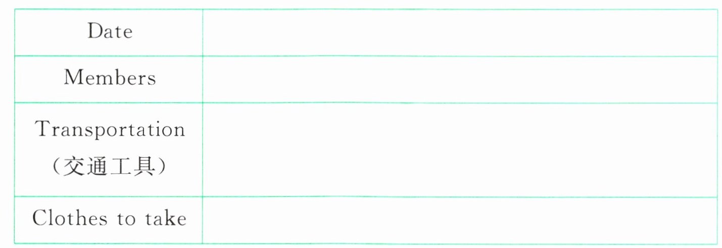 读万卷书不如行万里路。在旅行时,我们可以欣赏美丽的风景,我们可以了解这个奇妙美丽的世界。请你和家人一起策划并完成一次暑期旅行。