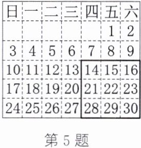 5. 2024 年 11 月 22 日是二十四节气之一的“小雪”,“小雪”标志着降雪的开始和气温的进一步降低.如图所示为 2024 年 11 月的月历表,在月历表中用方框圈出 9 个数,若圈出的 9 个数中,最大数与最小数的乘积为 297,求最小的数.