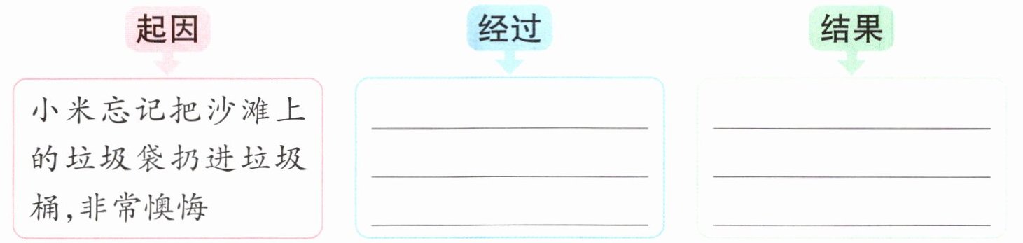2 [如何把握故事的起因、经过、结果]默读文章,仿照示例梳理出故事的经过和结果。(4分)