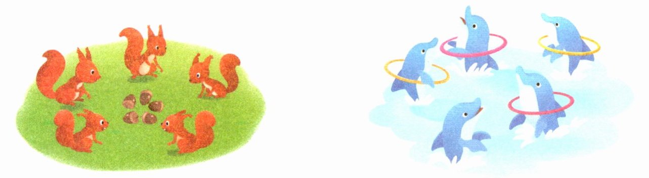和 一样多,4=4。 比 少,2<5。 比 多,5>2。