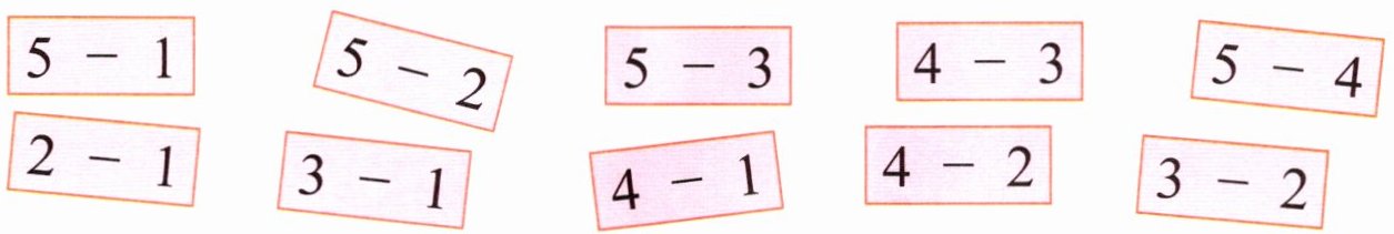 得数为1:$4 - 3$,$5 - 4$,$3 - 2$,$2 - 1$。