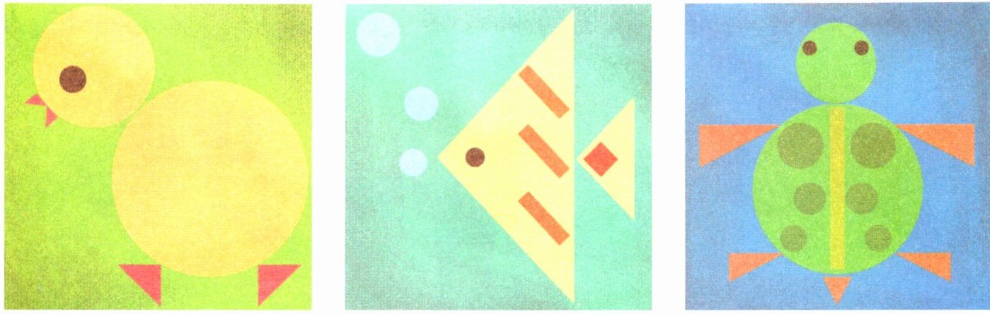 下面的图画漂亮吗?选择其中一幅,用彩纸拼一拼。