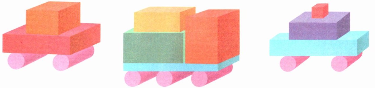 下面的车是用哪些形状的积木搭成的?看一看,搭一搭。