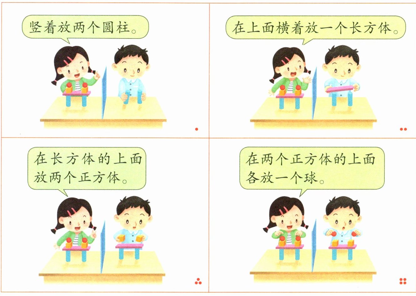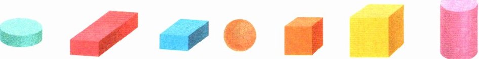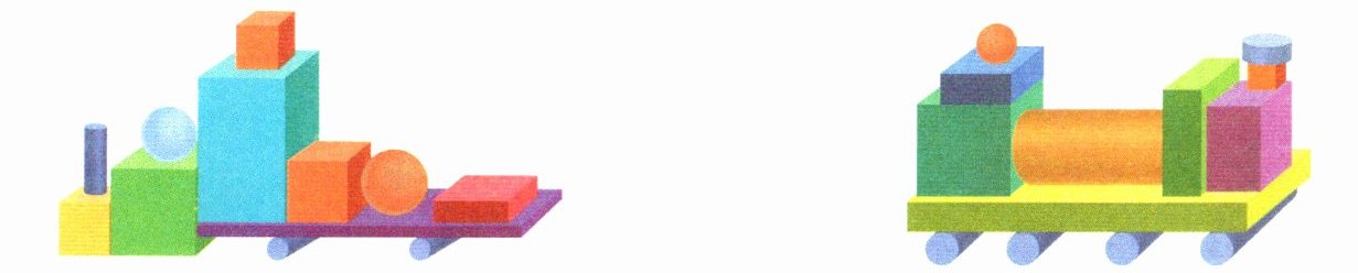 5. 下面的物体分别是由哪些形状的积木搭成的?先填一填,再照样子搭一搭。