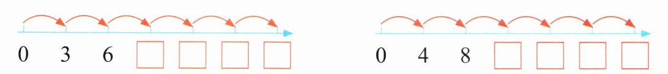 左边数轴:9;12;15;18;右边数轴:12;16;20;24。