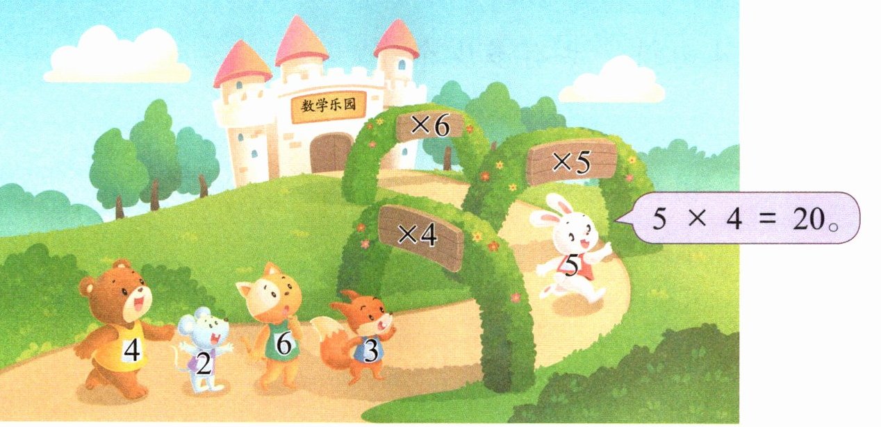 本题可根据图中动物身上的数字与三条小路上的乘法运算,分别计算出结果。