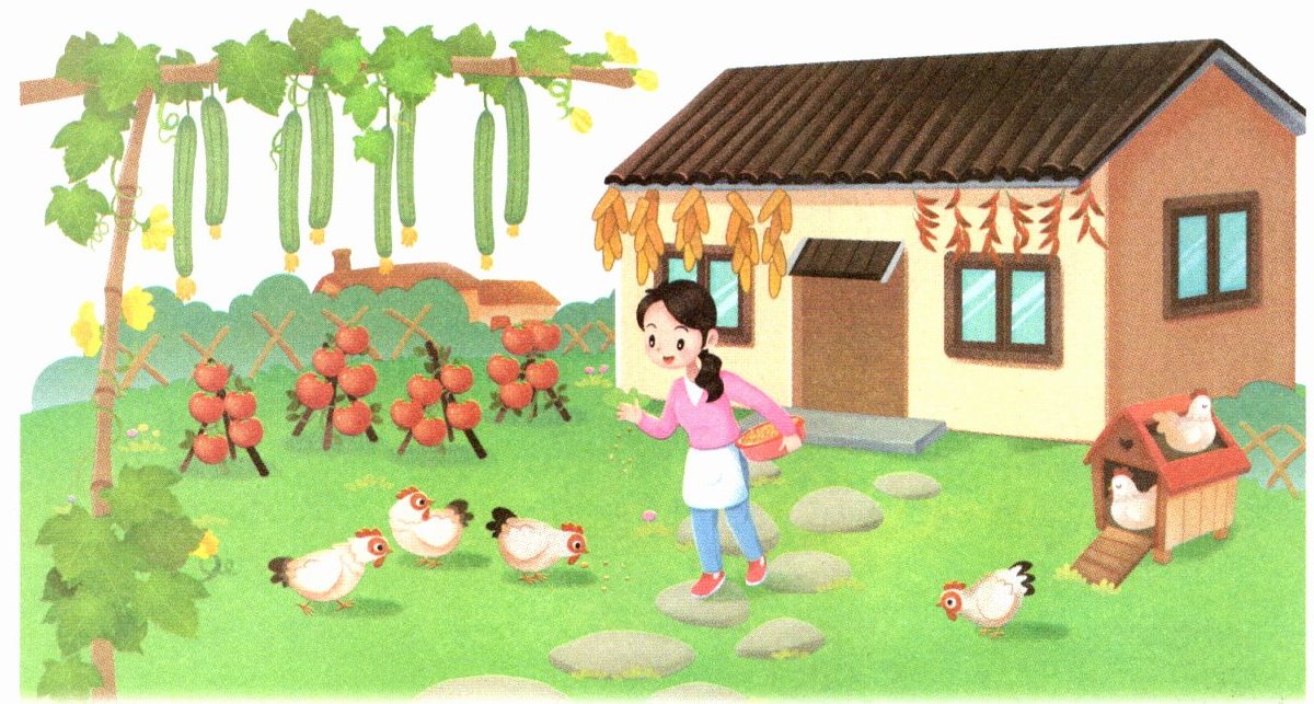 5. 一共有多少只鸡?4+2=6(只)(注:此题为加法,不符合乘法要求,仅为完整描述场景)