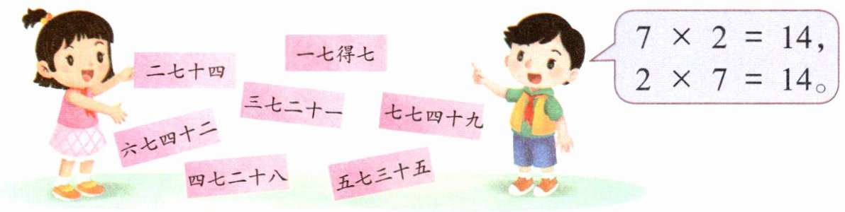 解析:本题考查乘法运算,通过观察图片可知每只七星瓢虫的背上有$7$颗“星”,要求$4$只七星瓢虫背上一共有多少颗“星”,就是求$4$个$7$是多少,用乘法计算。