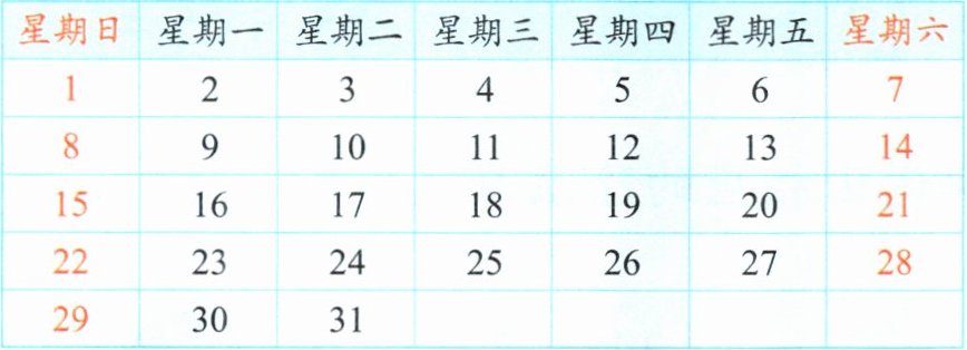 解析:本题考查了星期和天数之间的换算,一个星期有7天,要求3个星期是多少天,就是求3个7是多少,用乘法计算。
