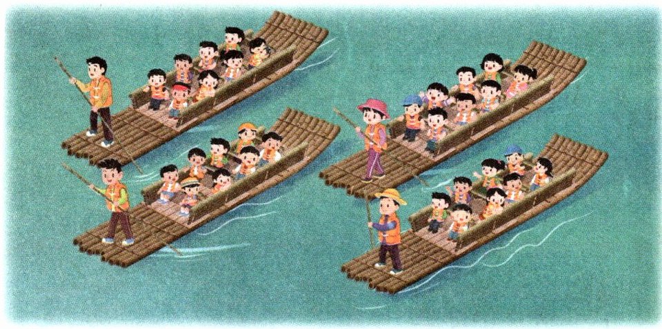 (注:假设每艘竹筏上有6个小朋友,共4艘竹筏,此为符合二年级上册乘法意义的典型提问及解答方式。)
