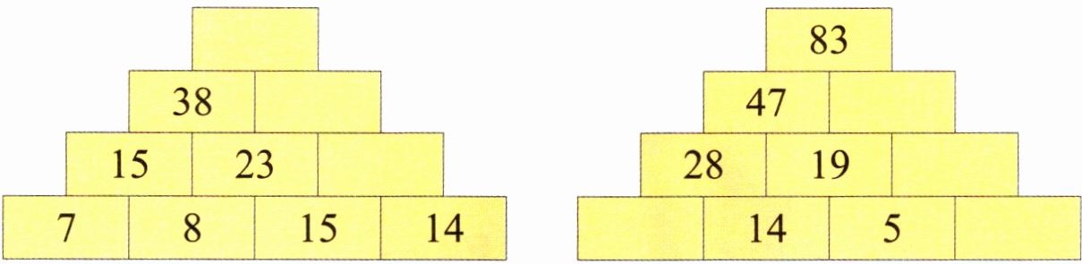 解析:题目考查加减法运算。第一问根据题干信息可知,原有的西瓜数量减去卖出的数量,即可得知还剩多少个,现有的西瓜数量加上又运进的数量,即可得知现在有多少个。第二问根据图片可知,上面一行的两个数相加等于下面一行的数,或下面一行的数减去其中一个数等于另一个数。