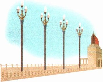 解析:本题考查乘法的基本运算以及对图片信息的提取能力。通过观察图片可知每根灯柱上有$3$盏灯,要求$4$根灯柱上一共有多少盏灯,就是求$4$个$3$是多少,用乘法计算。
