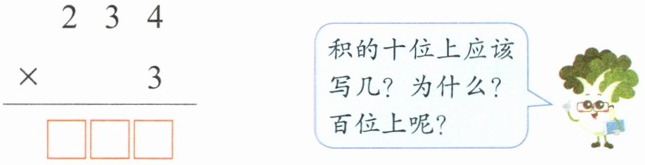 $\begin{array}{r} 234\\ ×\quad3\\ \hline □□□\end{array}\\ \hline □□□ $