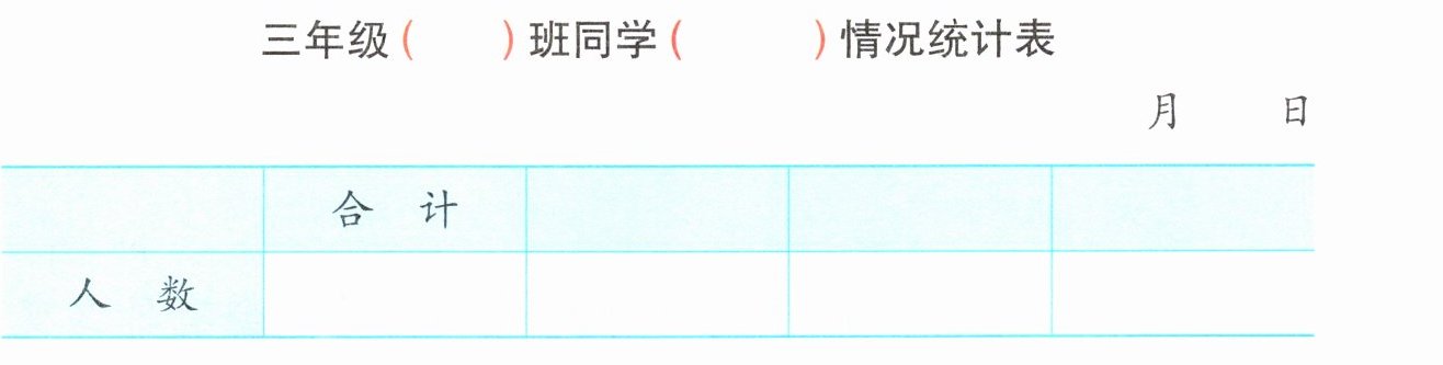 从这三种调查表中选择一种,在小组里调查后全班汇总,完成统计表。