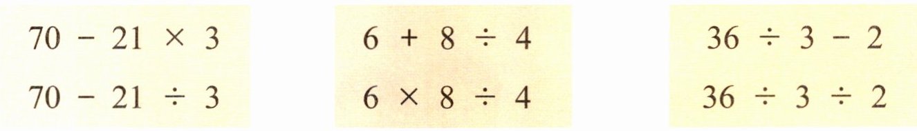 3. $96-32÷8$ $45+48÷4$ $84÷2-37$