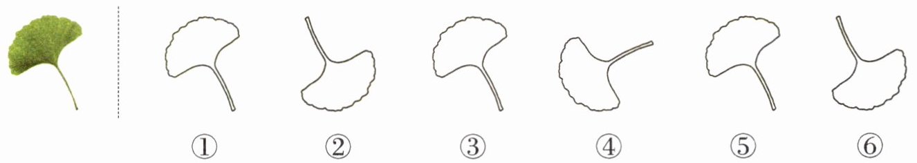 2. 哪几片树叶可以通过平移和绿色树叶重合?