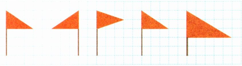 2. 下面哪两个小旗图可以通过平移互相重合?说说你的理由。