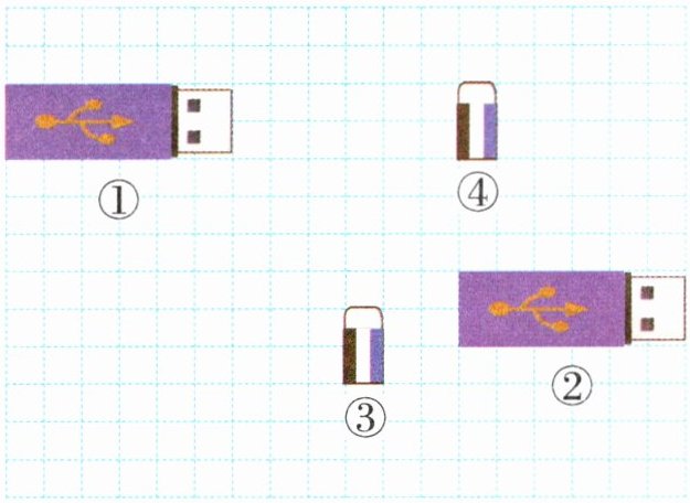 3. 从附页1剪下U盘图和橡皮图,在附页2的方格纸上,把U盘图从图①的位置平移到图②的位置,把橡皮图从图③的位置平移到图④的位置。说说你是怎样移的。