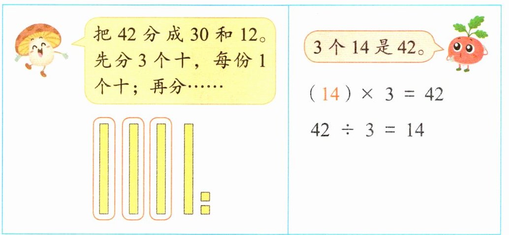 竖式一般这样写:$\begin{array}{r} 14\\ 3\enclose{longdiv} {42}\\ 3\\ \hline 12\\ 12\\ \hline 0\end{array} $