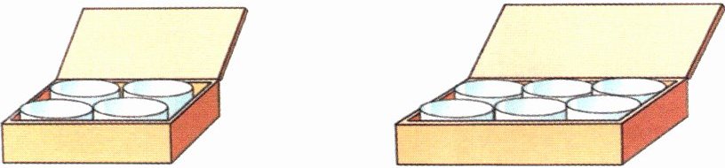 2. 右边的盒子容积大。因为右边盒子里装的杯子数量比左边多,且杯子大小相同,所以右边盒子能容纳的空间更大,容积更大。