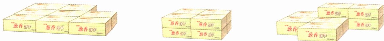 1. 商店把同样的盒装饼干摆成3堆(如下图)。这3堆饼干的体积相等吗?为什么?