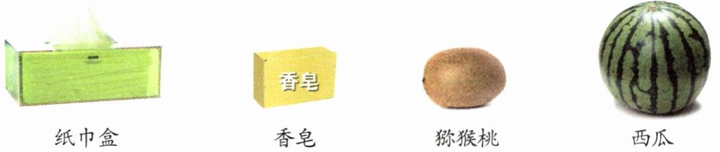 (2) 比1立方分米小的:香皂、猕猴桃;比1立方分米大的:纸巾盒、西瓜。