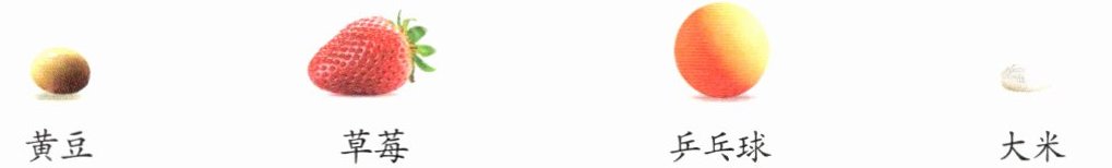 (1) 比1立方厘米小的:黄豆、大米;比1立方厘米大的:草莓、乒乓球。