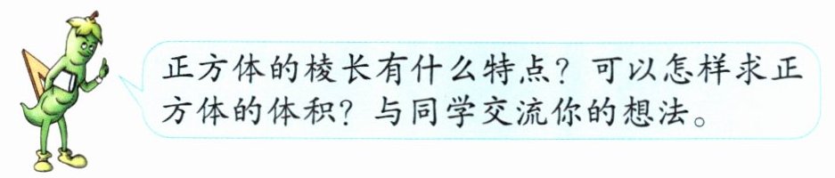 正方体的棱长有什么特点?可以怎样求正方体的体积?与同学交流你的想法。