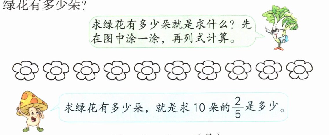 解析:同样根据分数乘法的意义,求$10$朵的$\frac{2}{5}$是多少用乘法。