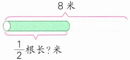 解析:题目考查分数乘法的意义。求一个数的几分之几是多少用乘法计算。从图中可知求$8$米的$\frac{1}{2}$是多少。