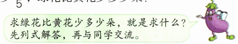 求绿花比黄花少多少朵,就是求什么?先列式解答,再与同学交流。