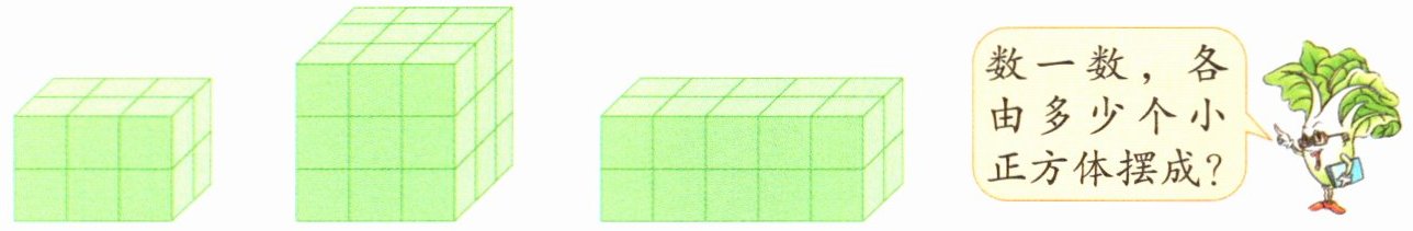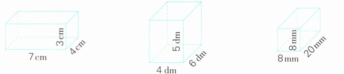 4. 下面的长方体和正方体都是由棱长1厘米的小正方体摆成的。它们的长、宽、高或棱长各是多少?