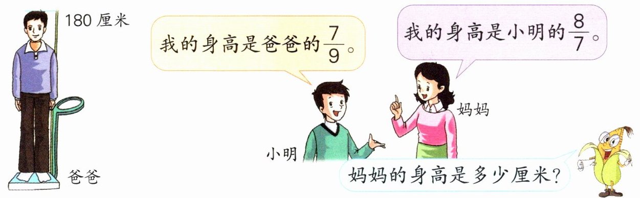妈妈:我的身高是小明的$\frac{8}{7}$。