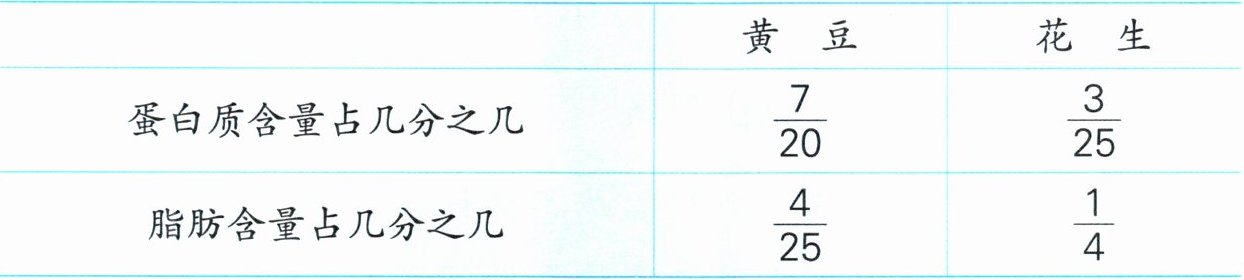 | 蛋白质含量占几分之几 | $\frac{7}{20}$ | $\frac{3}{25}$ |