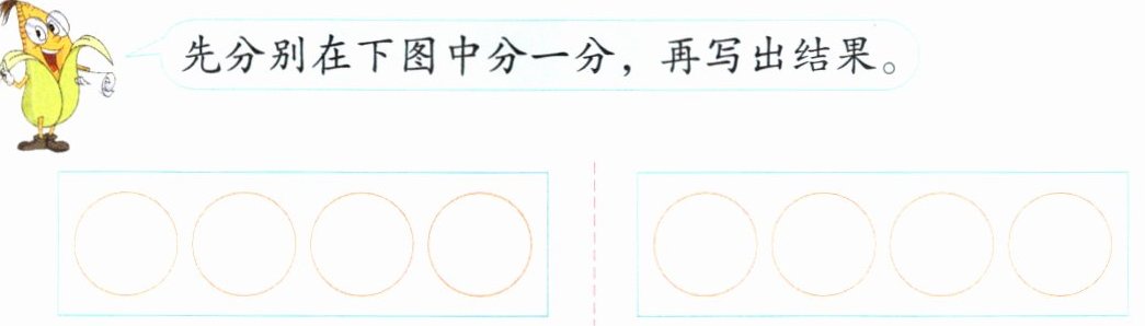每人分$1$个时:$4 ÷ 1 = 4$(人),用除法计算。