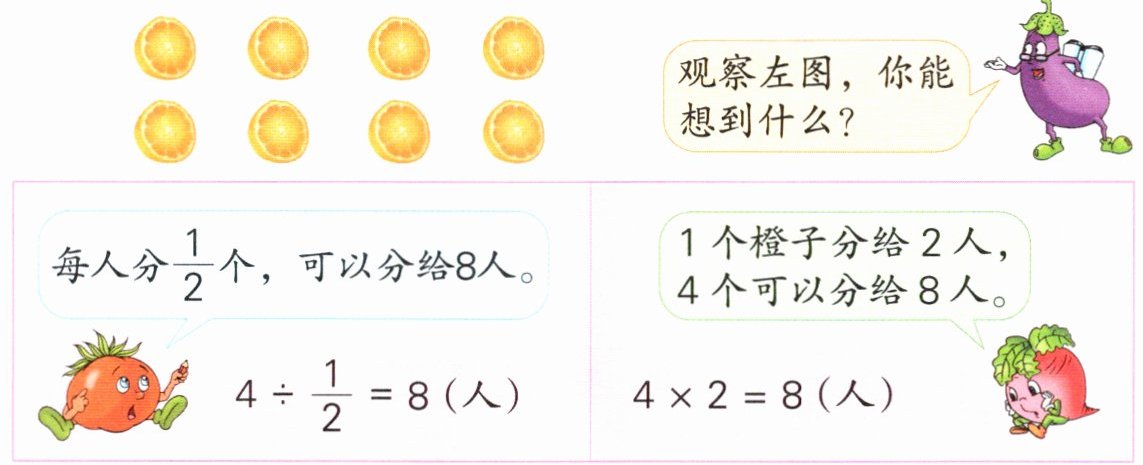 从上面的结果可以看出,$4 ÷ \frac{1}{2} = 4 × 2$。