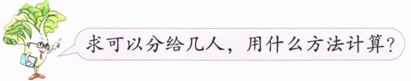 每人分$2$个时:$4 ÷ 2 = 2$(人),用除法计算。