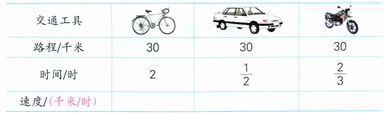 | 交通工具 | 路程/千米 | 时间/时 | 速度/(千米/时) |