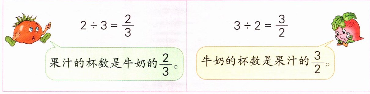 果汁的杯数是牛奶的$\frac{2}{3}$。 牛奶的杯数是果汁的$\frac{3}{2}$。